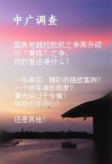 而這兩者都將對國美的市場經營極為不利,其導致的不僅將是黃與陳的俱傷,更是國美電器的最大不幸!或者我們想象力更豐富一下,面對電器商場門店式經營的困局,這又會不會是被導演的一場騙局呢? |