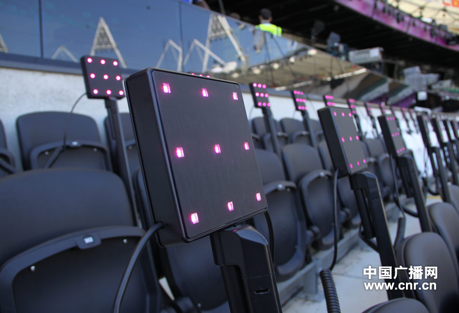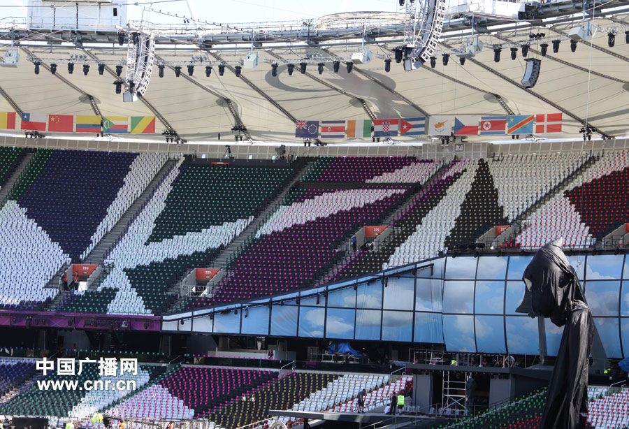 初始我以為為了讓觀眾靠的更加舒服,實(shí)際上,它是由9個可變化顏色的小燈泡組成。于是,當(dāng)總導(dǎo)演需要時,整個倫敦碗的觀眾席都可呈現(xiàn)出一副波瀾壯闊、五顏六色的音樂的奏章。(中廣網(wǎng)特派記者束偉發(fā)自倫敦)