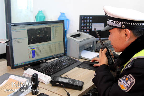 執(zhí)勤民警正在通過查緝布控系統(tǒng),對(duì)重點(diǎn)排查車輛進(jìn)行攔截部署。長城網(wǎng) 高琳哲 攝