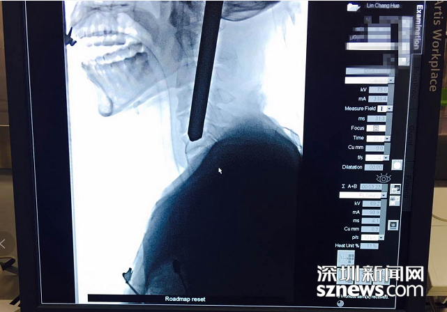 拍片顯示鋼筋深入患者頸部