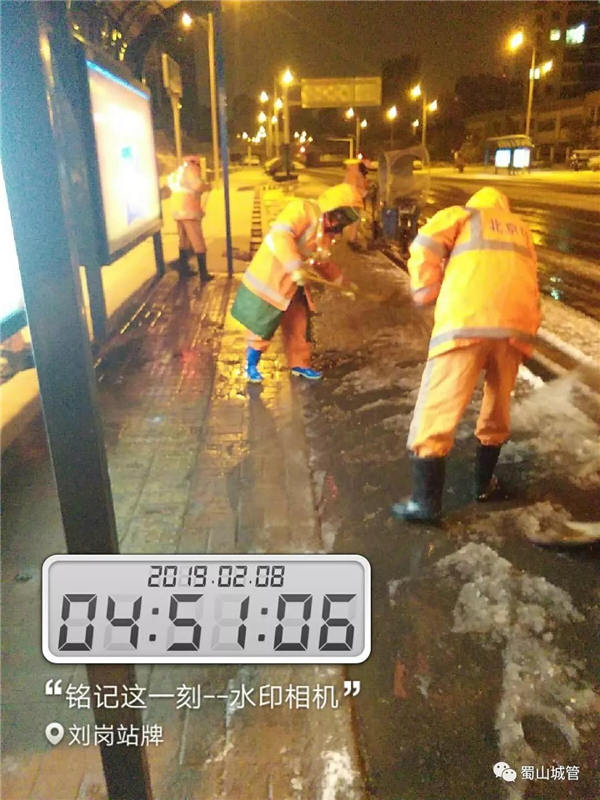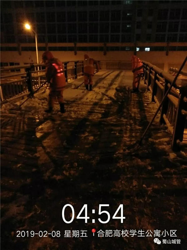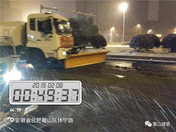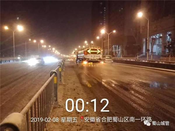 這個(gè)雪夜,環(huán)衛(wèi)橘和城管藍(lán)又是一夜無眠,他們奔走在合肥各個(gè)大街小巷,為市民的安全出行保駕護(hù)航。