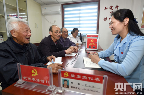 央廣網(wǎng)安徽頻道5月9日合肥消息 合肥市瑤海區(qū)三里街街道三里三村社區(qū)的黨代表工作室,合肥市黨代表吳小華在和社區(qū)群眾面對(duì)面交流,收集群眾提出的意見(jiàn)和建議。