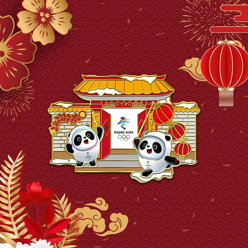 “恭賀新禧”春節(jié)主題徽章限量3000枚,展現(xiàn)在中國(guó)傳統(tǒng)四合院門前,冬奧會(huì)吉祥物冰墩墩手拿紅紅的燈籠,生動(dòng)還原迎接新春佳節(jié)的歡樂(lè)情景