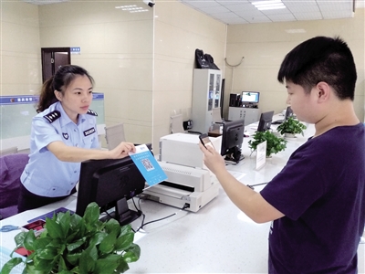 交巡警向市民介紹使用支付寶進行交通違法處理。