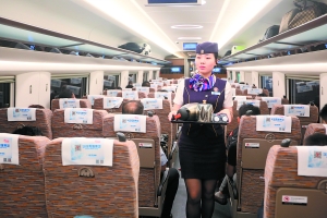 不僅如此,“復興號”列車乘坐起來也更為舒適。相比“和諧號”,“復興號”動車組車體高度、寬度均有不同程度增加。車廂高度從3380mm增加到4080mm。車內空間更加寬敞,尤其在二等座車廂,這種變化尤為明顯。市民李先生表示,“第一次坐復興號,一上車就感到有明顯變化,車座寬了不少!坐起來更舒服了。”車廂內的燈光也更為柔和溫馨,頂部還加裝了橢圓形頂燈。