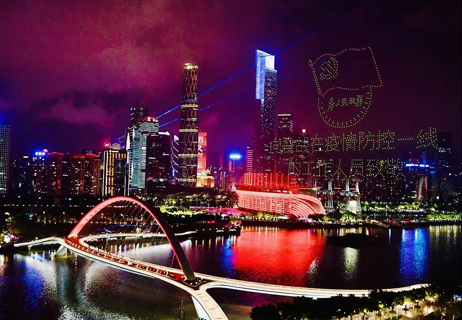 震撼天幕光影秀!廣州首座跨珠江人行橋正式開通