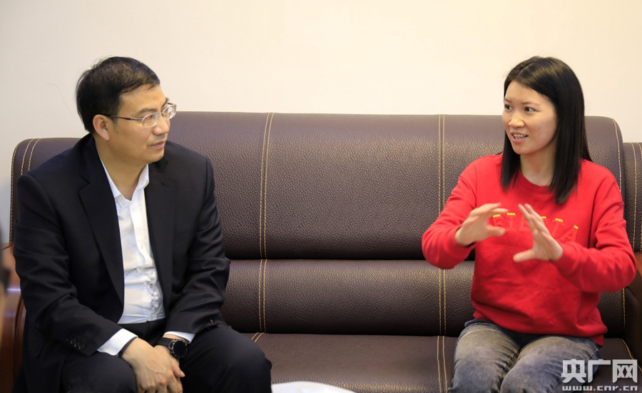 汕尾市稅務局黨委委員、總經濟師郭郁(左)與全國人大代表張麗(右)座談交流。(央廣網發)