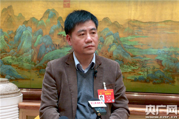 全國人大代表陳廣浩在接受央廣記者專訪。(央廣網(wǎng)記者 官文清 攝)