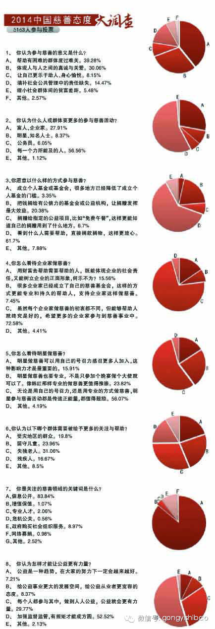 本次調(diào)查從4月15日18時至4月21日10時,共有5163位網(wǎng)友參與調(diào)查。從調(diào)查數(shù)據(jù)與網(wǎng)友留言中,我們能感受到公眾對公益慈善的關(guān)注日益強烈,人人公益的時代即將到來。