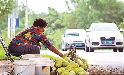 在路邊賣香瓜,只為積攢一點(diǎn)兒治病的錢