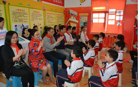落成儀式后,參會嘉賓與受捐學校學生共同在“安全體驗教室”中上了一堂生動的安全教育課。“安全體驗教室”設有自然災害、交通安全、消防安全、自我防護和急救互救五大板塊內容都深受同學們的喜愛。課堂上。來自沿灘第二小學校的郭雨純小朋友說“通過這堂課的學習,我學會了如何科學求救,壓迫止血和螺旋包扎法,我要把學到的知識回去教給爸爸媽媽,希望以后能經常在安全體驗教室里學習。”