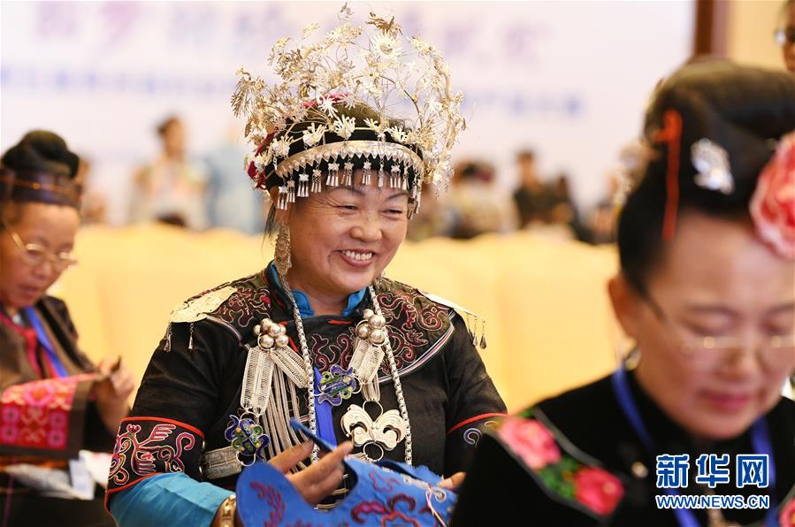 當日,第五屆貴州省婦女特色手工技能暨創新產品大賽在貴陽市舉行。來自貴州省各地的繡娘和染娘分別就民族刺繡、民族蠟染、創新產品設計等項目進行比拼,她們在現場飛針走線、巧手繪圖,展示貴州婦女特色手工之美。