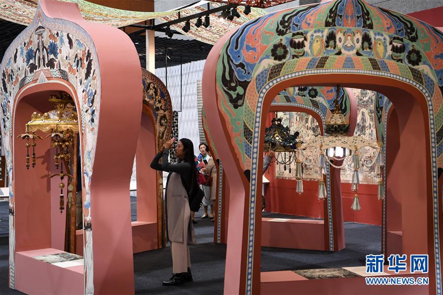 •      9月27日,在敦煌國際會展中心,參觀者欣賞“古道天馬——絲綢之路上的交通”展覽。新華社記者范培珅 攝