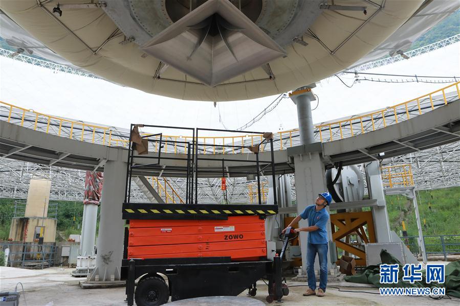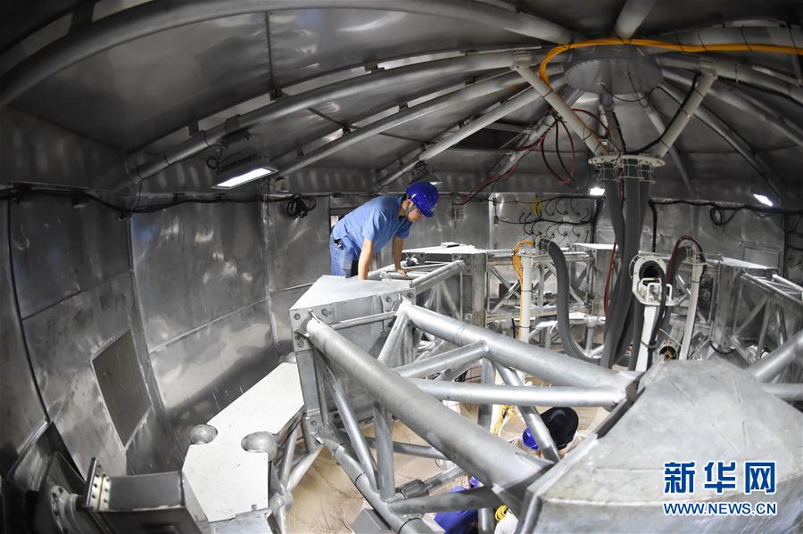 8月10日,石向瑋在FAST饋源艙內作業。新華社記者歐東衢 攝 -