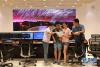 孫純(左一)與石向瑋(右一)在FAST總控室內進行觀測準備(8月9日攝)。新華社記者張傳奇 攝