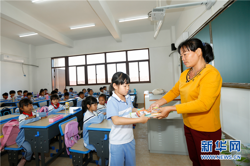 中央民大附中陵水黎安實驗小學(xué)正式開學(xué),老師給學(xué)生們發(fā)放課本。新華網(wǎng)發(fā) 黎安實驗小學(xué)位于黎安風(fēng)情小鎮(zhèn)內(nèi),是一所公辦完全小學(xué),由中央民族大學(xué)附屬中學(xué)承辦托管,在充分整合招收原有4個學(xué)校(原黎安中心小學(xué)、大墩小學(xué)、嶺仔小學(xué)、后嶺小學(xué))學(xué)生的基礎(chǔ)上,面向黎安鎮(zhèn)招收適齡少年兒童。在基礎(chǔ)設(shè)施方面,建有36個標(biāo)準(zhǔn)教室,最大可容納1620個學(xué)生就讀,擁有圖書25000冊,并以高標(biāo)準(zhǔn)配足配齊功能室設(shè)備和環(huán)形塑膠跑道、籃球場、足球場等運動場地和體育器材。此外,該校還引進有資質(zhì)的專業(yè)配餐公司和校車服務(wù)公司,為學(xué)生提供免費午餐服務(wù)和上下學(xué)接送服務(wù),是陵水首家啟用校車接送的公立學(xué)校。 -