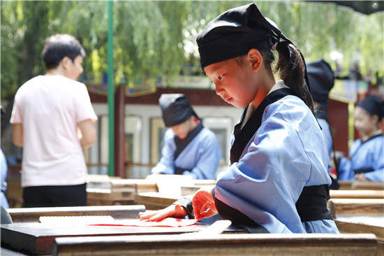 中國翰園碑林作為大型文化藝術園林,始終堅持以傳承弘揚中國書法文化為宗旨,結合自身主題定位,著力開發以書法為主題的特色研學課程及線路,歷經近3年的打造,現已開發“國學禮儀體驗之旅”、“小狀元研學之旅”、“小小書法家研學之旅”、“感恩孝行研學之旅”四大主題線路。課程融入故事情節、體驗度高,深受孩子們的喜愛。其中“小小書法家研學之旅”被河南省教育廳、河南省文化和旅游廳評為河南省研學實踐教育特色課程和研學精品線路。同時景區圍繞傳承弘揚民族傳統文化為核心,培養了一批優秀的經營管理人才,包括書畫家、刻碑師、拓片師,專業研學導師等。