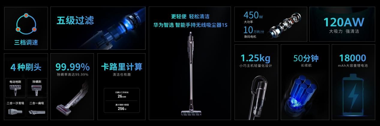 此次發布會新品上華為智選智能手持無線吸塵器,使用起來更順手,手腕承力小,即使長時間使用也不會感到手累,而且合理的結構設計使得吸力衰減慢,續航時間長,或許能做到使你的生活更輕松一點。