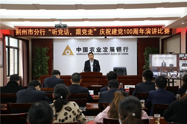 百年大黨,征途如虹。為隆重慶祝中國共產黨百年華誕,深入推進黨史學習教育,引導黨員干部學史明理、學史增信、學史崇德、學史力行,3月31日,農發行荊州市分行舉辦了“聽黨話、跟黨走”慶祝建黨100周年演講比賽,來自全市7個支行黨支部和2個機關黨支部共10名選手參賽。