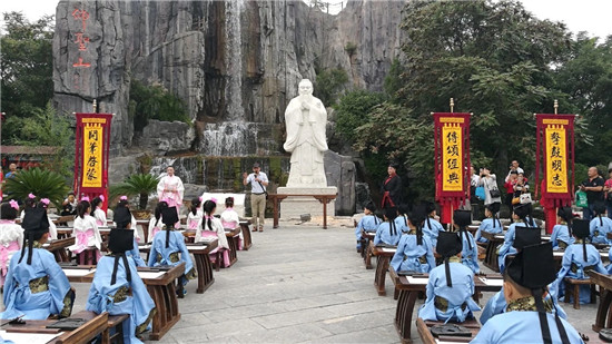 近兩年,翰園碑林不斷豐富研學(xué)課程,并著力培養(yǎng)課程研發(fā)團(tuán)隊,同時積極與外界合作,拓展市場。現(xiàn)已開展的研學(xué)課程主要有開筆禮、拓片體驗、華文菁英會、書法大講堂、金磚練字、書海拾貝、趣拼六藝、獨步宋詞、活字印刷、曲水流觴、碑刻體驗、國學(xué)禮儀等其中,古裝體驗類項目備受學(xué)生喜愛,參與的老師們更是對書法大講堂和書海拾貝贊不絕口。現(xiàn)景區(qū)專業(yè)課程研發(fā)團(tuán)隊8人,其中有專業(yè)的書法老師、國學(xué)研究人員等,并與多家研學(xué)機構(gòu)或旅行社合作。