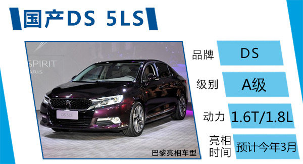 DS 5LS作為一款DS5的衍生車型,其與后者基于相同平臺打造。在動力方面,DS 5LS與DS5搭載了相同的1.6T渦輪增壓發動機,并或將與之匹配一臺6速自動變速器。同時雖作為一款豪華品牌旗下的B級三廂車,但其在售價上將與奧迪A3三廂版等處于A級車市場的豪華品牌旗下車型相近,也因此相比同價位的競爭對手,該款車型在尺寸以及動力上擁有一定優勢,其將在2014年3月在華投產。
