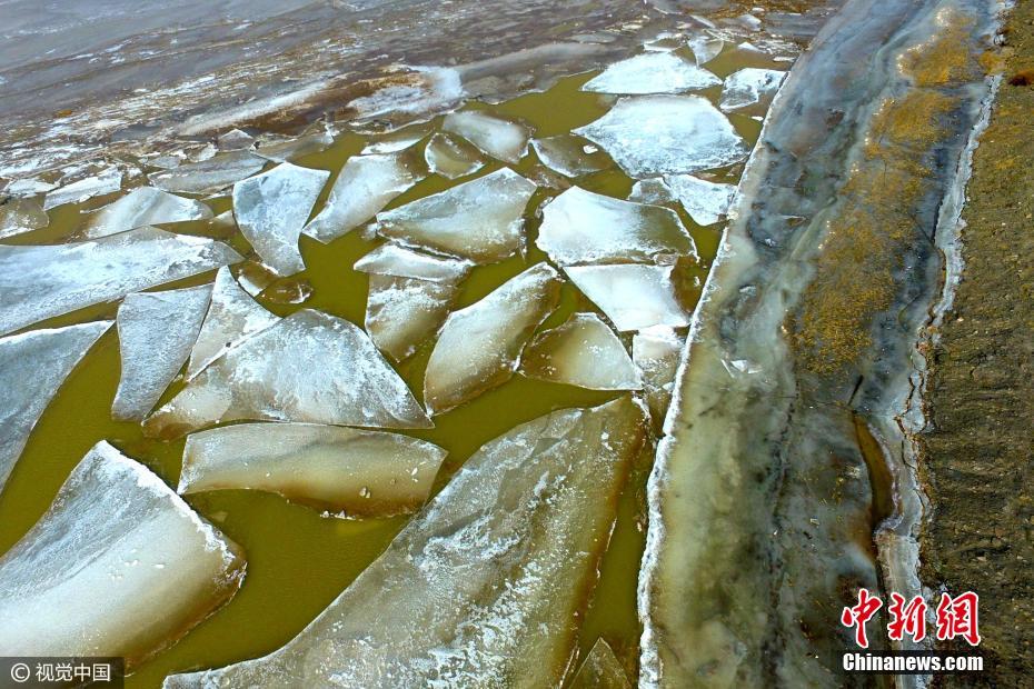 2017年2月7日,寧夏回族自治區石嘴山市,雖然已經立春,但因為寒流襲來,寧夏的春天卻有冬天的寒冷。2月7日11時,在黃河寧夏段石嘴山惠農段,這里的黃河依然被冰覆蓋。據了解,截止2月7日,黃河寧夏段麻黃溝河段封河20公里,其它河段無流凌、無封河。隨著近期氣溫回升,預計10日全部開河。圖片來源:視覺中國