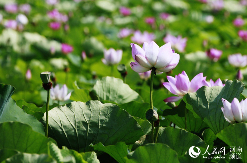 河南淮陽萬畝龍湖荷花競放,清香四溢,是游人觀荷消暑的好去處。