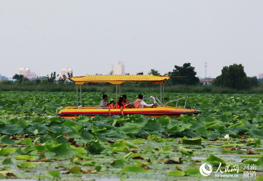 河南淮陽萬畝龍湖荷花競放,清香四溢,是游人觀荷消暑的好去處。 -