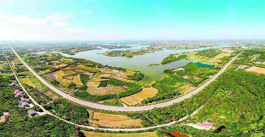 9月23日,從高空俯視,荊(州)當(陽)旅游公路在青山綠水中蜿蜒。該道 路 全 長50.7公里,是連接宜昌和荊門兩市的一條快速通道,極具景色之美、風(fēng)物之魅和人文之韻。目前一期工程建設(shè)的26.7公里路段已建成通車。