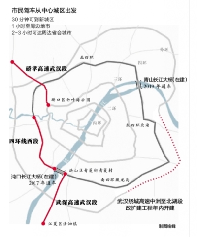 市交委相關負責人表示,隨著一批進出城道路的建設、改造及投用,武漢將形成“環形+放射”的高速公路主骨架與武漢城市圈城際鐵路、高速鐵路共同構成立體路網。屆時,市民駕車從中心城區出發,30分鐘可到新城區、1小時至周邊地市、2-3小時可達周邊省會城市。