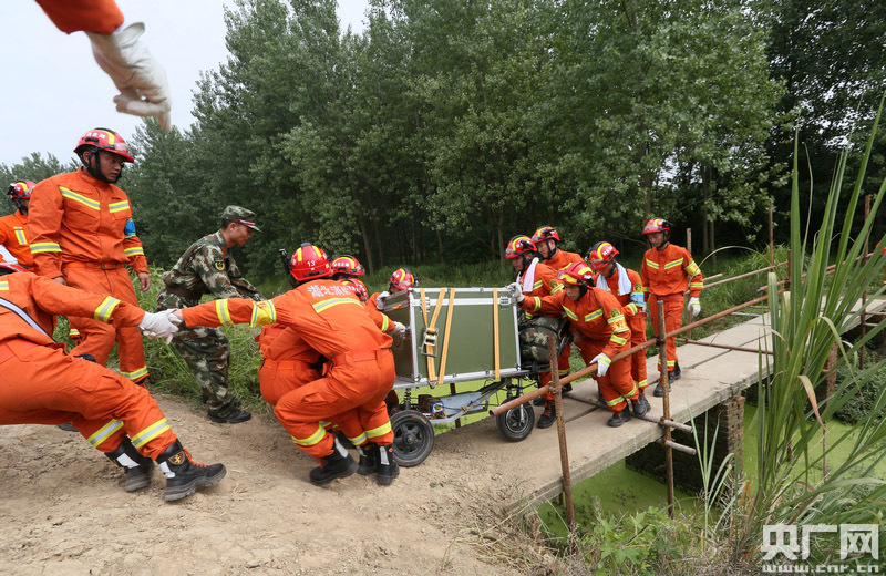 央廣網(wǎng)武漢6月20日消息(通訊員:王方)6月19日下午1時(shí)至次日凌晨1時(shí)18分,湖北消防總隊(duì)赴皖參演官兵攜帶雷達(dá)生命探測(cè)儀、混泥土液壓破拆工具組等重型救援裝備,歷經(jīng)12小時(shí)長(zhǎng)途跋涉,依次穿越鄉(xiāng)間小道、獨(dú)木橋、建筑廢墟、茂密叢林、陡峭山坡、城市道路,渡過(guò)河流,完成約10公里徒步行進(jìn)任務(wù),順利到達(dá)地震演練核心區(qū)。 -