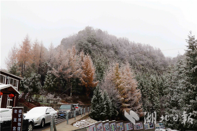 11月6日,在保康縣馬橋鎮(zhèn)堯治河村梨花山拍攝的雪景。當(dāng)日,受冷空氣影響,保康縣馬橋鎮(zhèn)、龍坪鎮(zhèn)等海拔1200米以上的高山地區(qū)降下今年入秋以來(lái)第一場(chǎng)雪。(視界網(wǎng)楊韜張強(qiáng)攝)