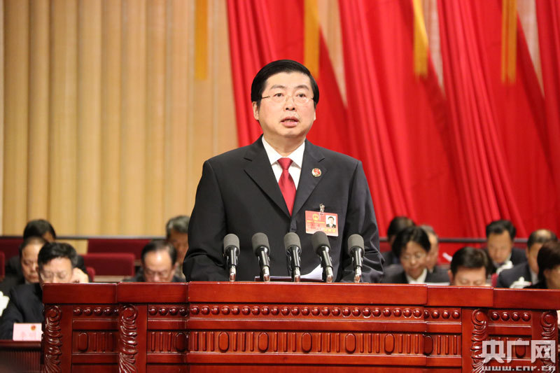 省人民檢察院檢察長(zhǎng)王晉向大會(huì)報(bào)告工作(記者張卓 攝)