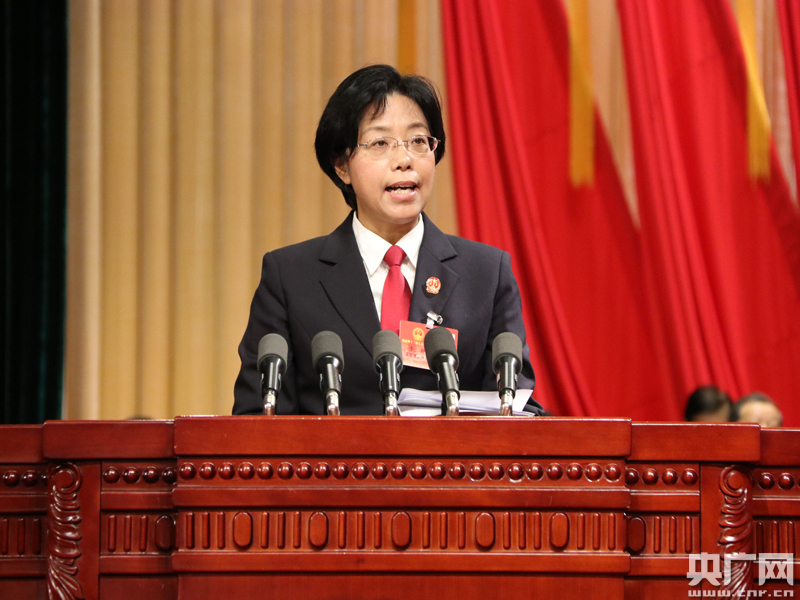 圖為李靜向大會(huì)作湖北省高級(jí)人民法院工作報(bào)告(攝影:張卓)