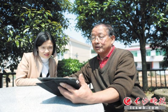 村民羅建植培養(yǎng)了兩個(gè)博士兒子,孩子從小到大的成績單、錄取通知書等“家庭檔案”如今都存在他的iPad中。長沙晚報(bào)記者顏開云 攝