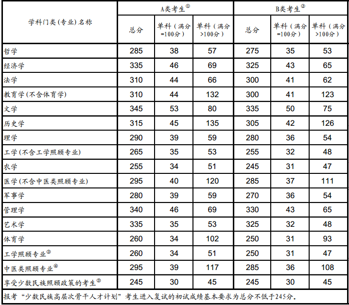 2017年全國碩士研究生招考考生進入復試的初試成績基本要求(學術學位類)