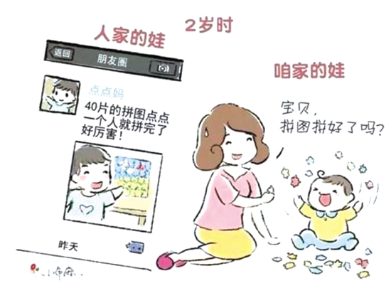 吳先生就很苦惱,因為吳先生的妻子在朋友圈看了別人家的孩子學了這門技術,上了那個培訓班,取得了怎么樣的成就,就會變得很焦慮!八粗鴦e人的孩子如何如何優秀,她就會覺得自己孩子是不是落后了,然后給孩子報各種培訓班。我也勸她不要去看,不要多想,但過段時間,她又會開始焦慮!眳窍壬X得人家曬娃,自己看看也就過了,不用過多地去在意,每個人都有自己的成長路程,沒必要跟隨著人家所謂的成功緊追不放。