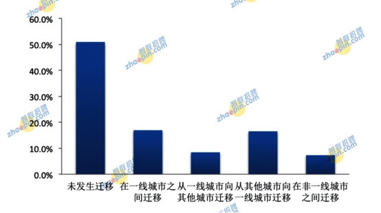 .過半海歸回國后未發生城市間遷移,16.5%的海歸向一線城市遷移