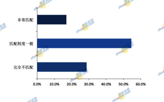 進一步調查發現,海歸群體對當前工作崗位與其海外所學專業的匹配度偏低,認為非常匹配的僅為16.9%,認為匹配程度一般的為54.5%,認為完全不匹配的占28.6%。根據智聯招聘此前發布的《2017年大學生求職指南》數據來看,有38.5%的國內大學生存在與專業不對口的情況。看來,不論是國內的大學生,還是海歸群體,均存在專業不對口的情況。