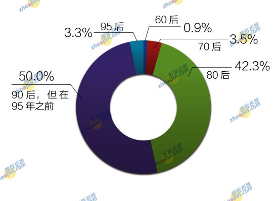 年齡方面,以80后和90后海歸為主,其中,80后海歸占比42.3%,90后海歸占比為53.3%,經過細分發現,90-95年之間的海歸占比為50.0%,95后僅占3.3%。70后、60后海歸占比較少,分別為3.5%、0.9%。