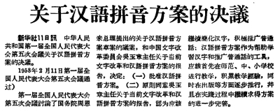 1958年2月12日,《光明日報》1版刊發(fā)《關(guān)于漢語拼音方案的決議》