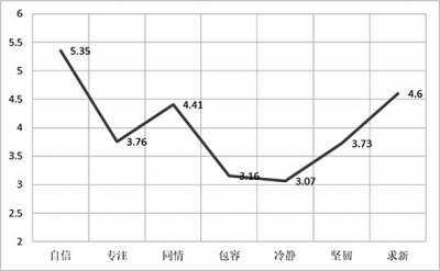 調查采用6分制等級問卷,結果以平均分、標準分表示各心理品質的發(fā)展水平,以1-6分代表從低到高的發(fā)展趨勢,6分為滿分。