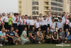 •   學生們躺在操場的草坪上,把老師圍在中間。