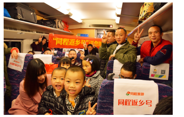 今年春運期間,同程火車票聯合各方,承包了廣州南→貴陽北、廣州→邵陽兩趟列車將在穗務工人員、貧困大學生等漂泊在外的2000余名游子免費送回家鄉。1月15日16點48分,廣州至邵陽的“同程返鄉號”愛心專列已經成功抵達終點邵陽站。