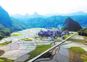 3月13日在廣西河池市羅城縣喬善鄉板團村航拍的田園景色。 (新華社發)