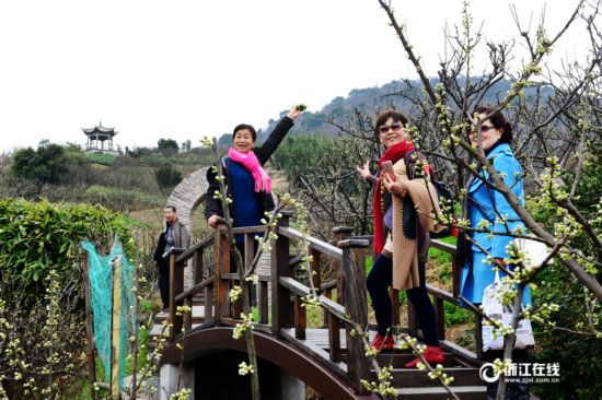 3月19日,喜歡踏青的游客在舟山市定海區金塘李子苑內賞花拍照。由于氣候影響,金塘島上的三千多畝李花仍在含苞欲放中,但賞花游客已經慕名而至。(浙江在線通訊員 姚峰 攝)
