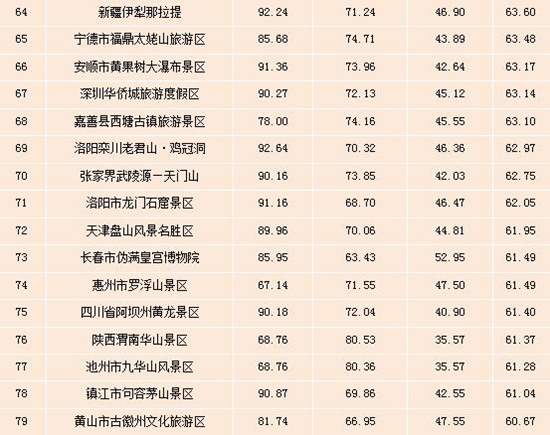 表:全國5A級景區雙微運營效果排行榜(Top100)