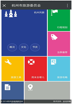 杭州旅游發(fā)展委員會微信公眾號“杭州旅游發(fā)布”設置“微門戶”融合各種便民旅游信息,例如“杭州風貌”、“行程規(guī)劃”、“當季推薦”、“旅游工具”、“周末去哪兒”等模塊,為用戶提供了一站式服務信息,為用戶帶來極大便利獲得好評不斷。(禾丁)