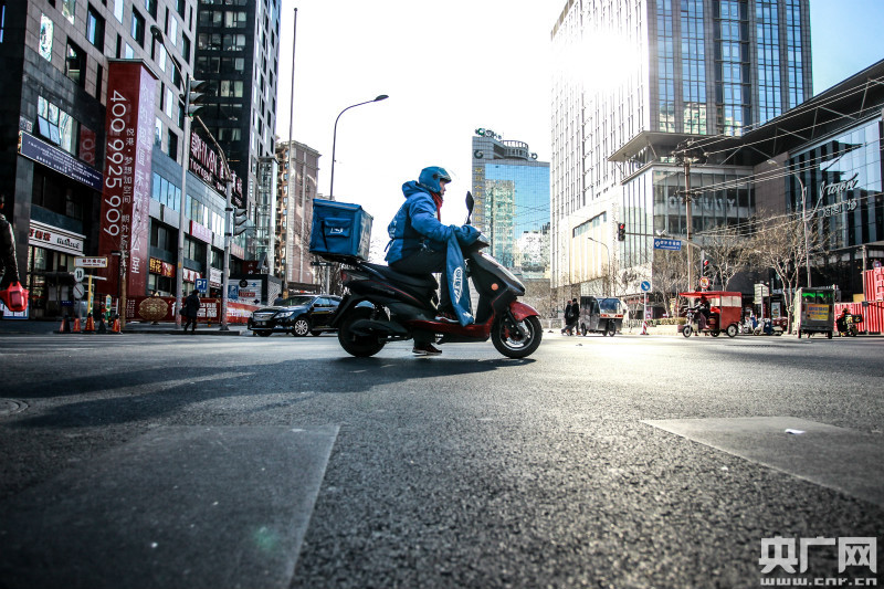 外賣員趙慶富的新年愿望(央廣網(wǎng)記者 韓靖攝)