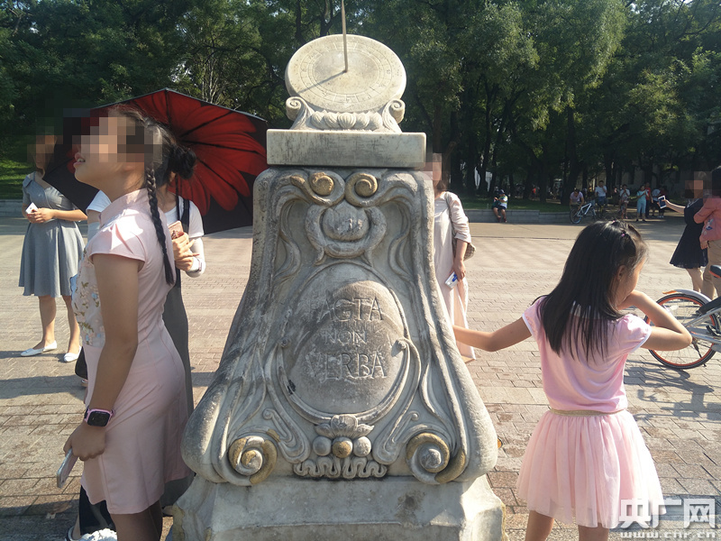 而就在記者探訪時,周圍還有不少游客“指導”孩子摸著日晷合影拍照。